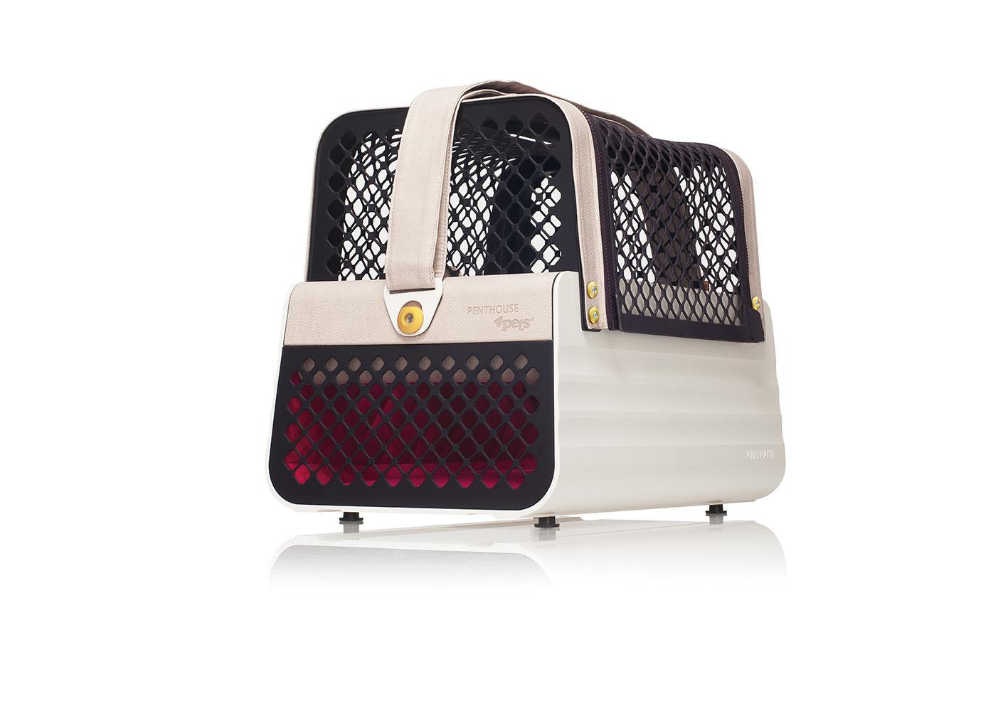 Die Penthouse Los Angeles bietet, mit seiner in Weiss gehaltenen Basis und dem aufregend pinkfarbenen Interieur, die Extraportion Chic. Die Lederoptik in Magnolienweiss veredelt das Penthouse Los Angeles, was dich und deinen Hund zum absoluten Star auf dem Grossstadt–Catwalk macht. Kleinsthundebox, welche auf dem Beifahrersitz montiert werden kann.