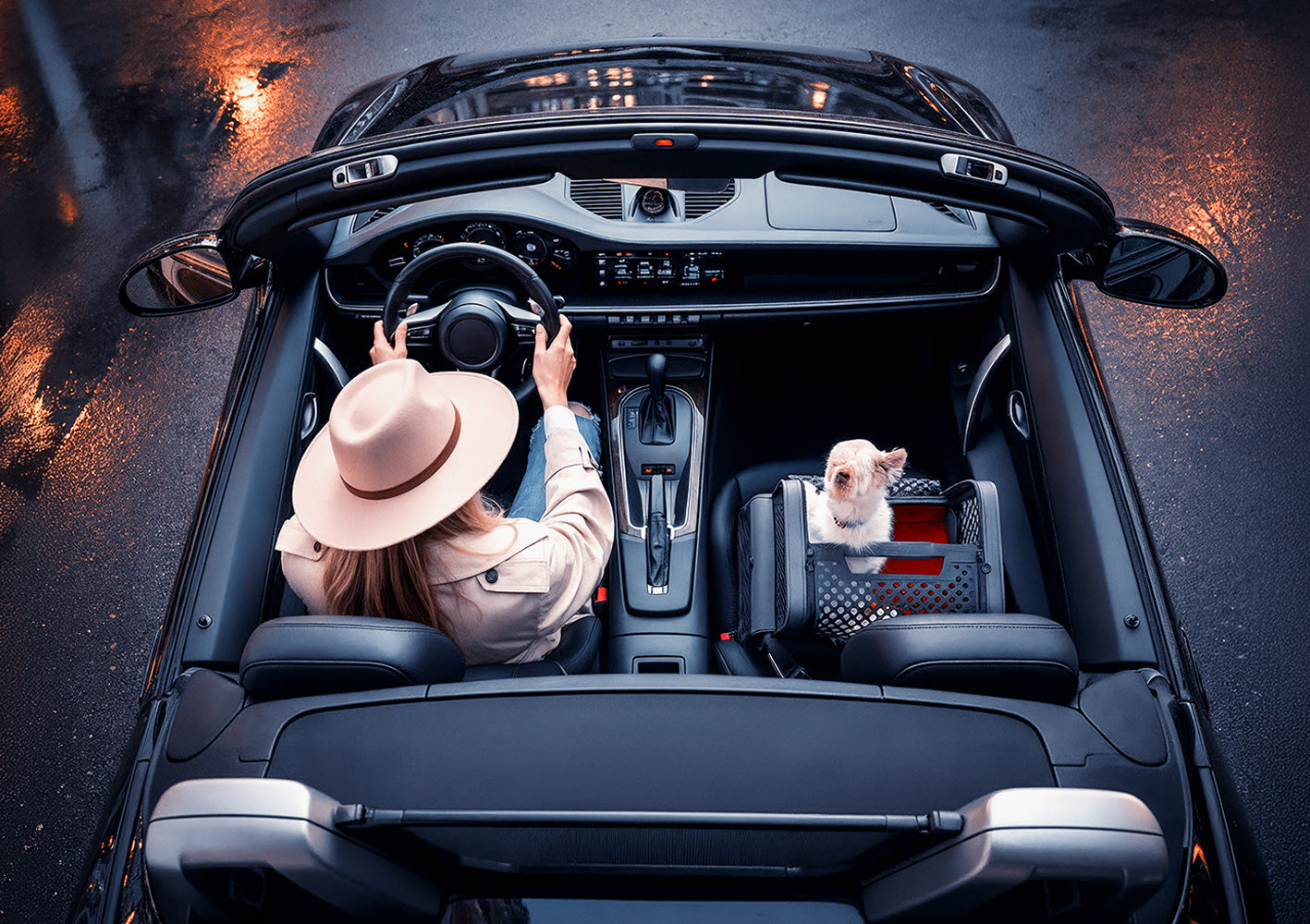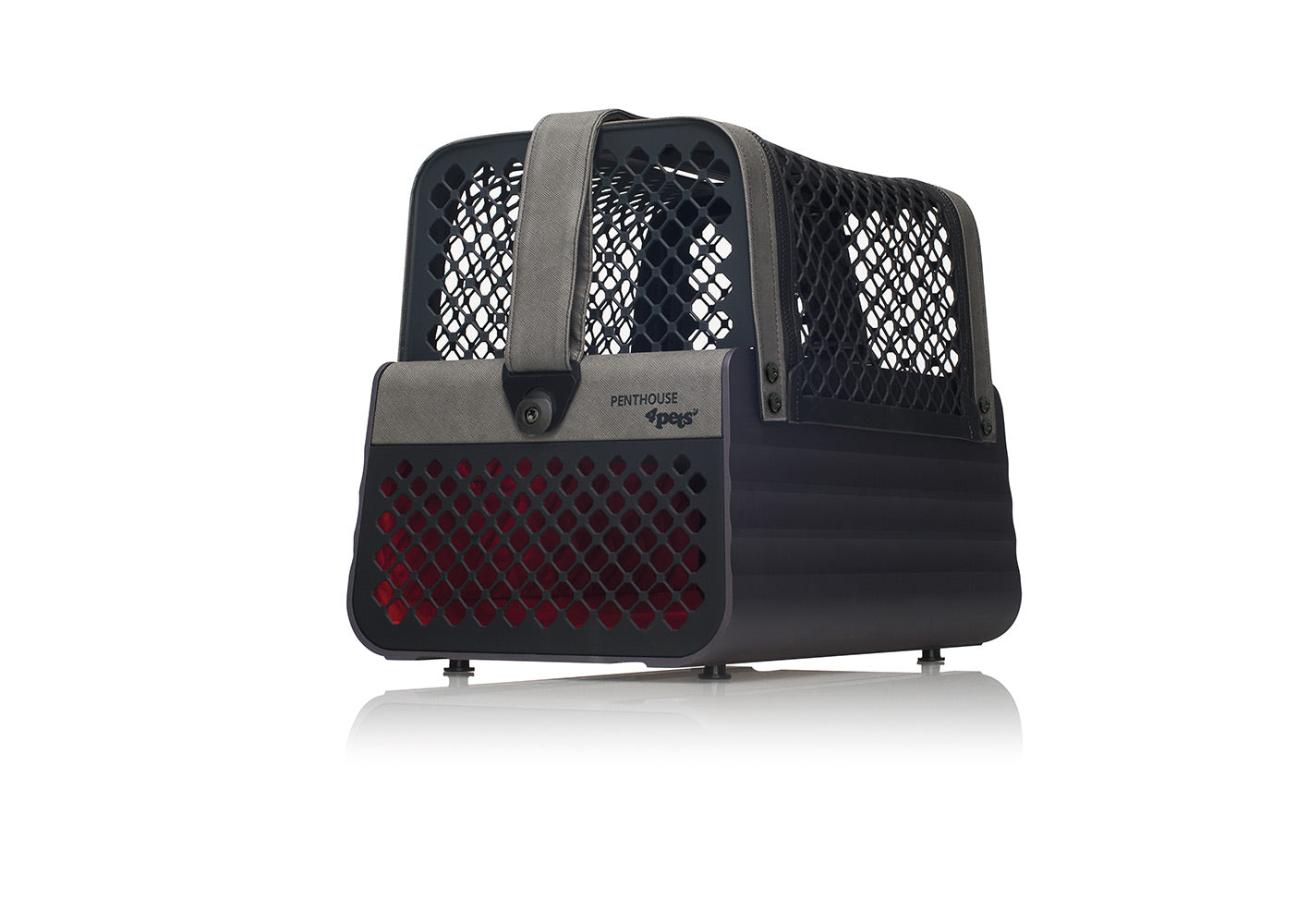 Mit der vornehm-luxuriös in kühlem Grau gehaltenen Basis versprüht Penthouse Montreal urban mondänes Flair. Die zurückhaltende, graue Lederoptik und das aufregende Rot des edlen Interieurs machen die Penthouse zum zeitlosen Begleiter. Kleinsthundebox, welche auf dem Beifahrersitz montiert werden kann.